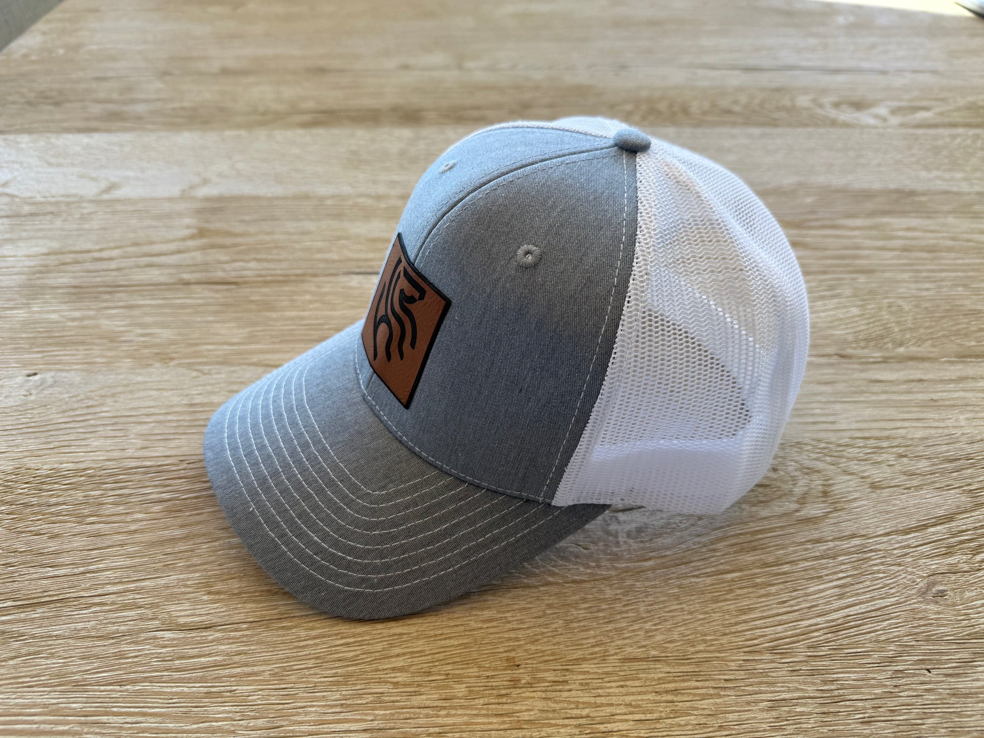 American Reins Leather Patch Trucker Hat - Gray + White