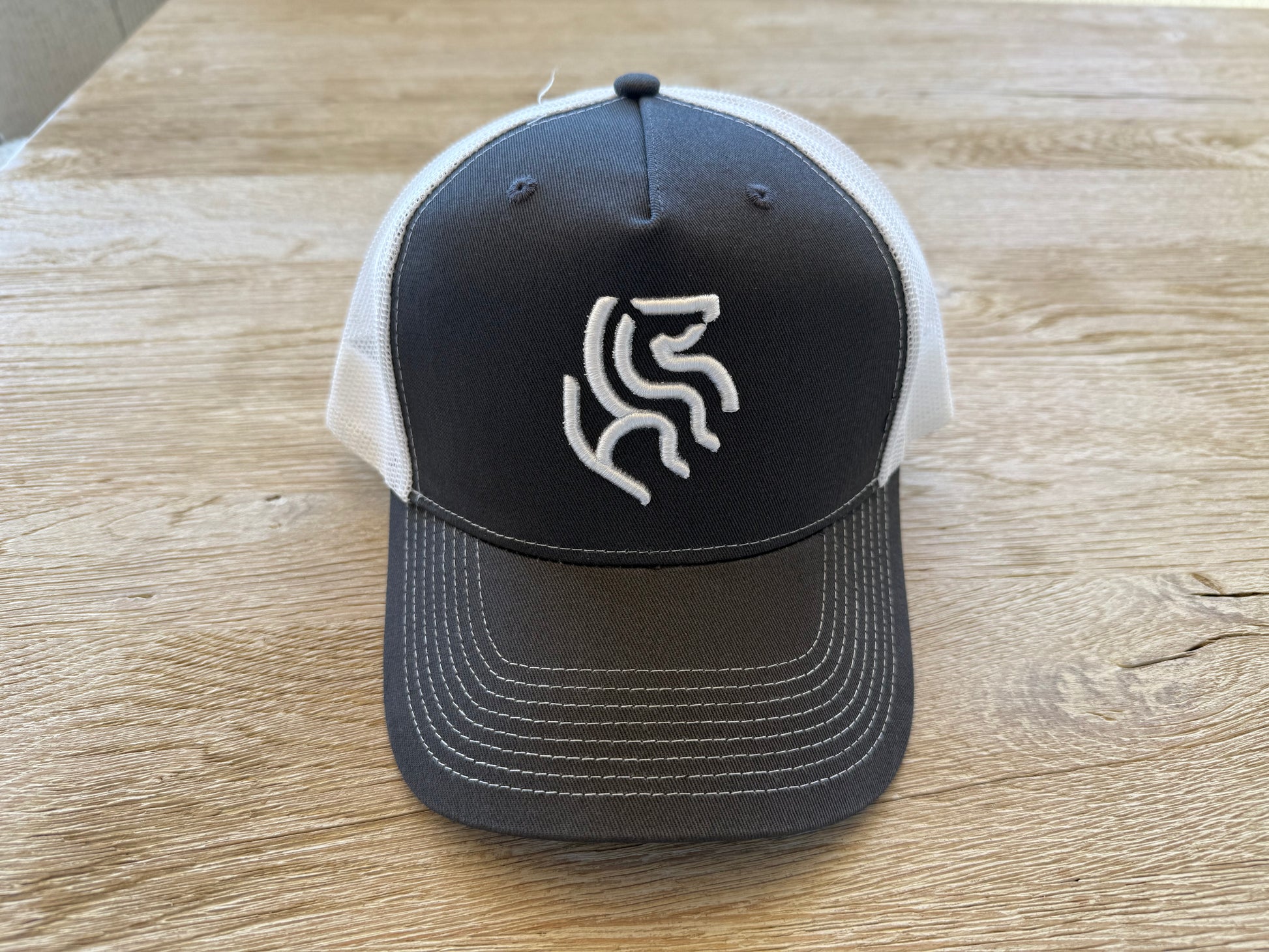 American Reins Puff Embroidery Trucker Hat - Charcoal + White